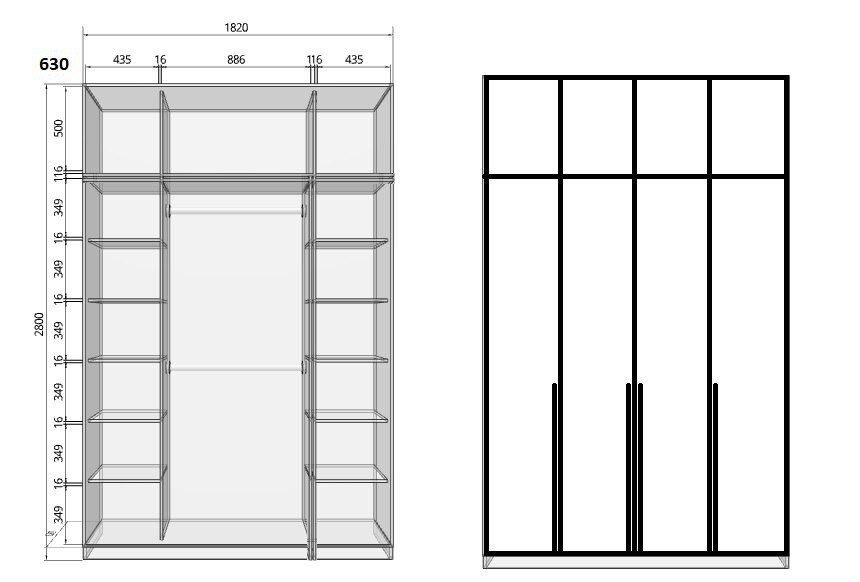 Гардеробная П-образня 1852/1877/1852*2400*500/400 |