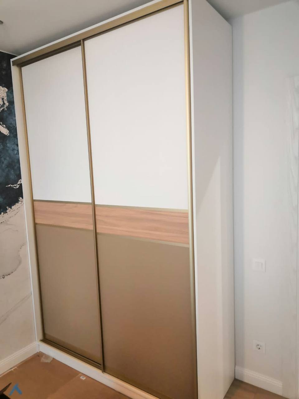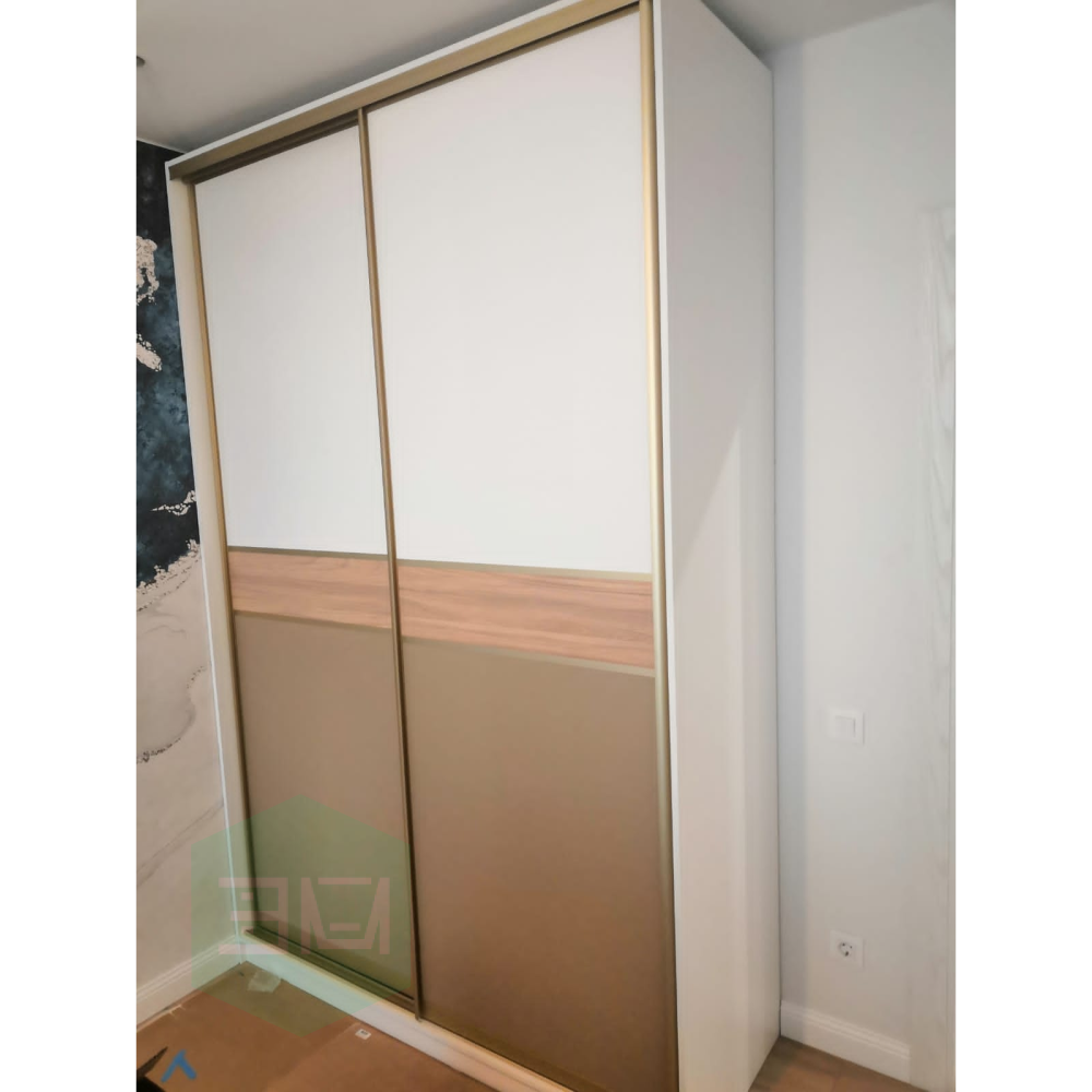 Шкаф купе Версаль. 1600*2500*600. Корпус ЛДСП белый матовый. Кромка 2 мм. 2 двери купе наборные по проекту — белый матовый, вяз натуральный благородный, каппучино. Профиль ЗОЛОТО матовое |